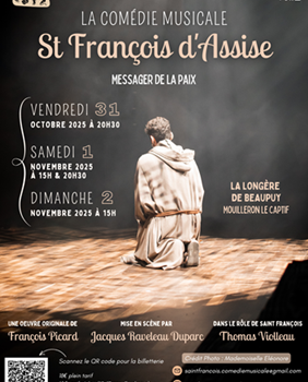 Spectacle original consacré à Saint-François d’Assise – Messager de la Paix, créé par l’association Messages en scène en partenariat avec le diocèse de Luçon et Siloë Librairies. Ce spectacle mêlant théâtre, musique et témoignages offre une belle occasion de (re)découvrir la figure de Saint François d’Assise et son message toujours…