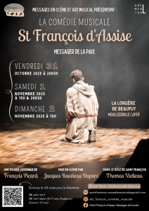 Spectacle original consacré à Saint-François d’Assise – Messager de la Paix, créé par l’association Messages en scène en partenariat avec le diocèse de Luçon et Siloë Librairies.